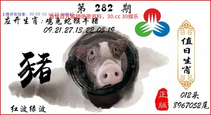 282期:九肖【猪马兔牛龙狗鸡虎猴】开:發00中